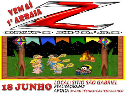 1ª ARRAIA DO GRUPO ZINGARO 18 DE JUNHO NO SITIO SAO GABRIEL....CONVITES A VENDA NA KALICIA, POSTO DA BARÃO, MERCEARIA SAO BRAZ..INFOR. 9949-0582